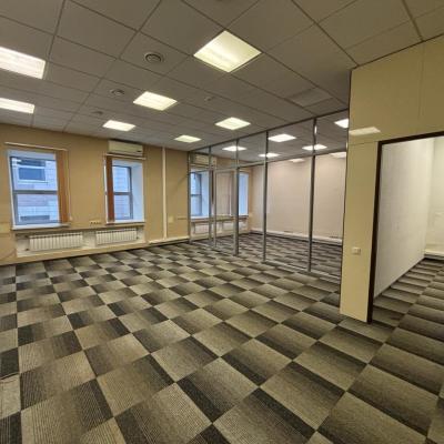 Сдается офисное помещение из пяти кабинетов в современном бизнес-центре “Au-room”, площадью 101,5 кв.м. на 1 этаже, в 4 минутах ходьбы от метро «Площадь Ильича». Залог - 1 месяц. НДС включен в арендную ставку. Высота потолков - 2,7м, пол - ламинат, потолок типа армстронг, стены - обои под покраску. Бизнес-центр работает в круглосуточном режиме. На территории БЦ имеется парковка, кафе-столовая, интернет, телефония. Помещение находится в управлении ООО «Управляющая компания „Помощь“». Комиссия за сделку не взимается.
